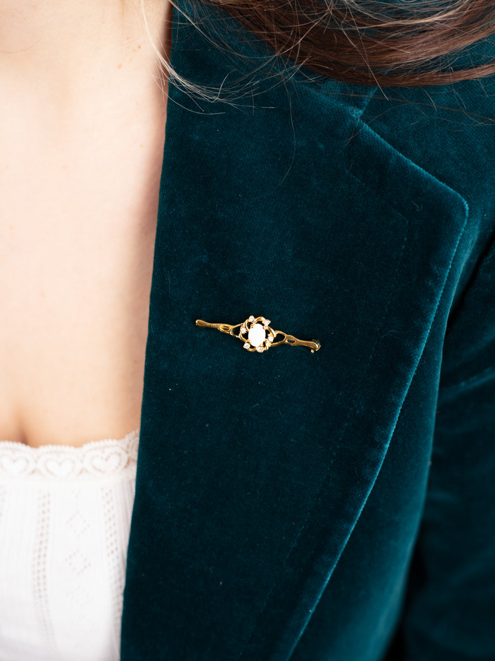 Brošas izmērs: aptuveni 1,85" x 0,6" / 4,7 x 1,5 cm