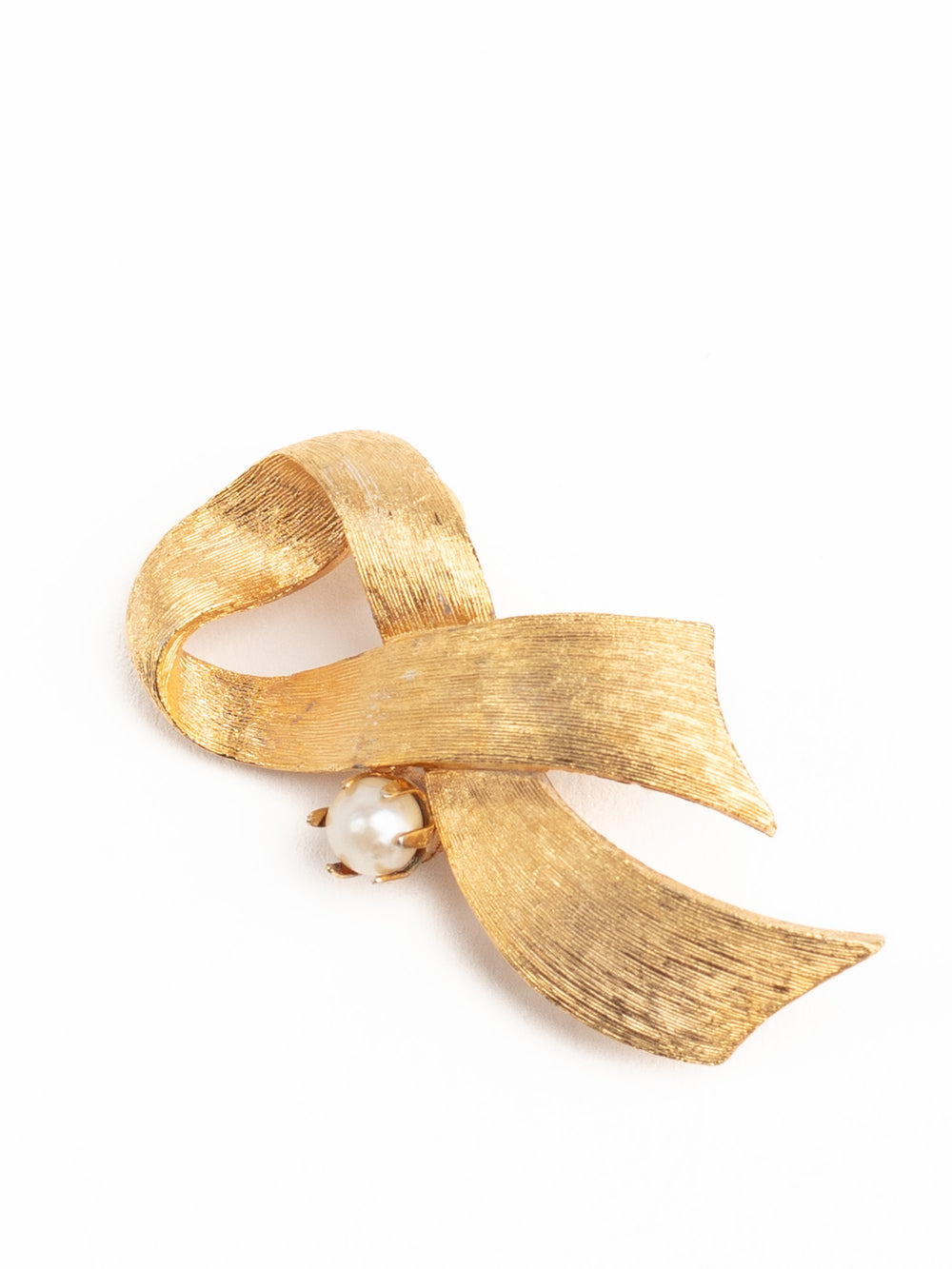 Vintage 60. gadu zelta toņa lentes piespraude ar mākslīgo pērli