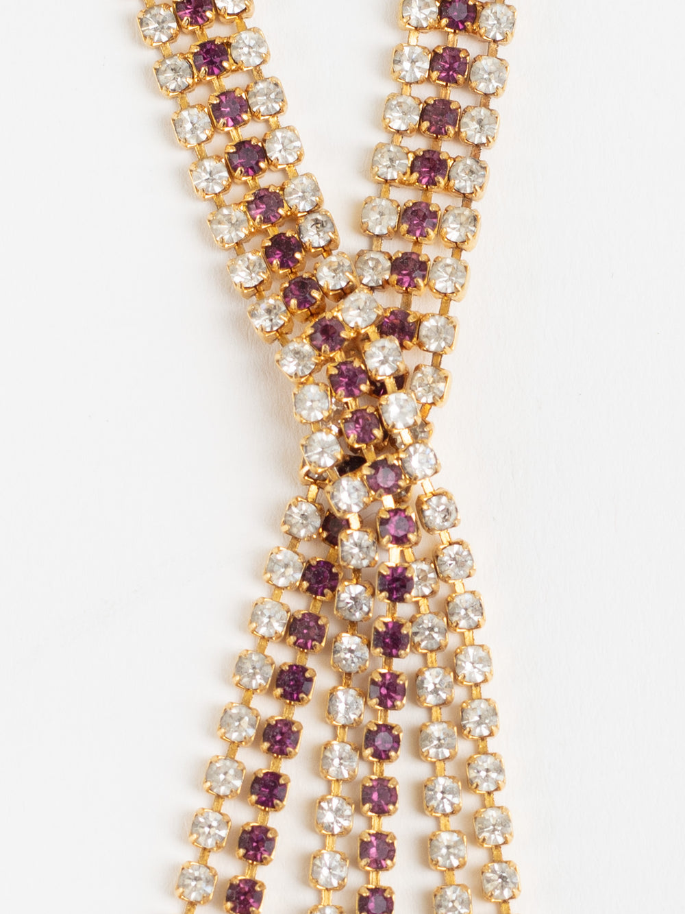Vintage 80. gadu zelta toņa kaklarota ar violetiem un caurspīdīgiem rhinestones dimantiem