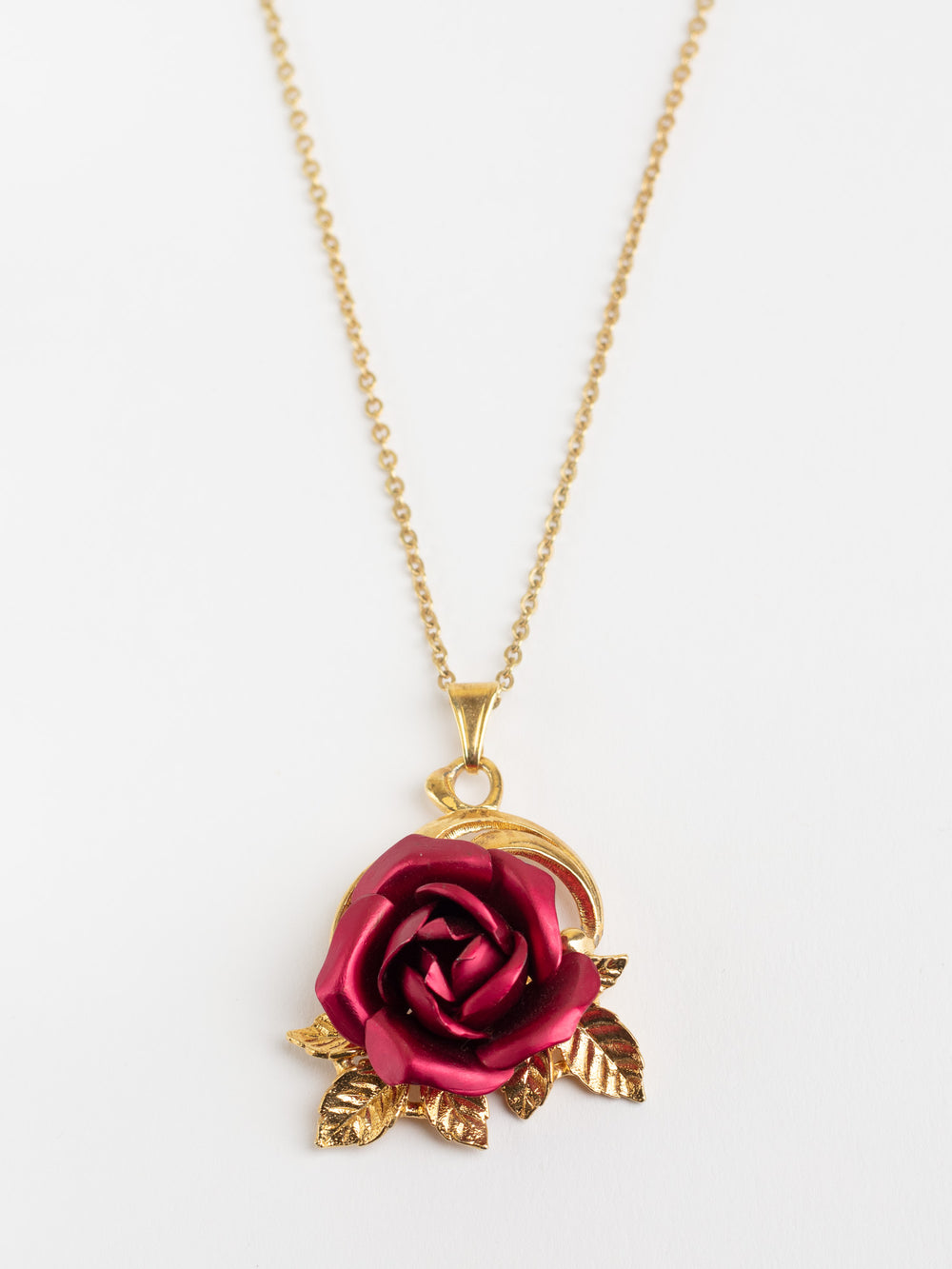 Vintage 80. gadu zelta toņa kaklarota ar rožu kulonu