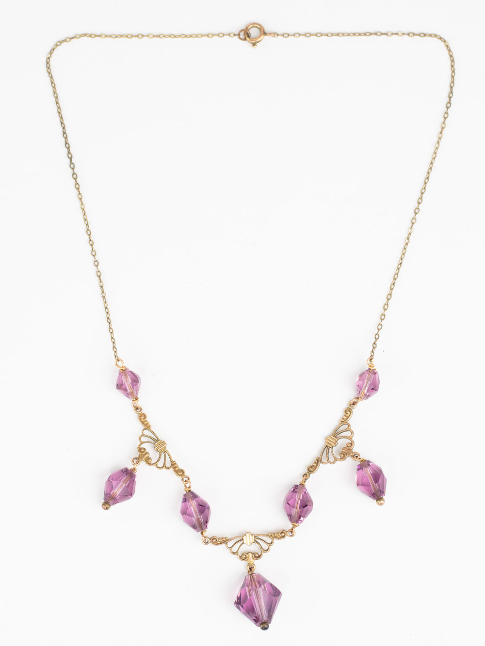 Vintage Edwardian stila kaklarota ar violetām stikla pērlītēm