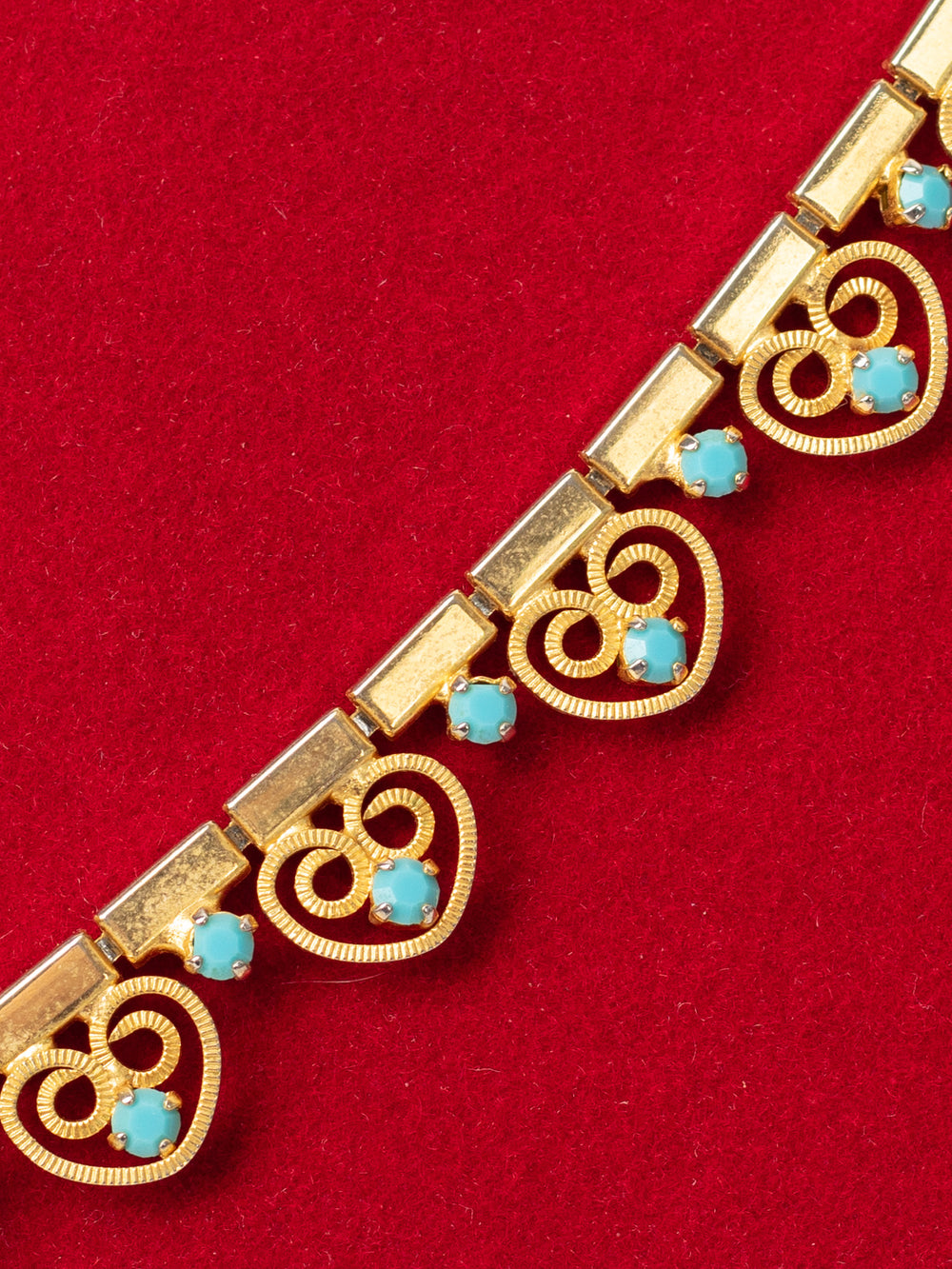 Vintage 60. gadu zelta sirds formas kaklarota ar ziliem stikla kabošoniem