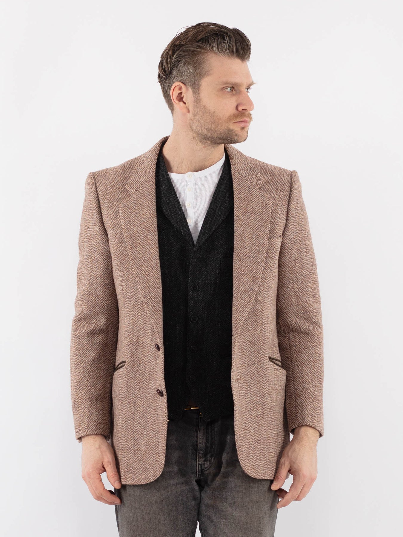 Vintage 90. gadu vīriešu Harris Tweed žakete bēšā krāsā