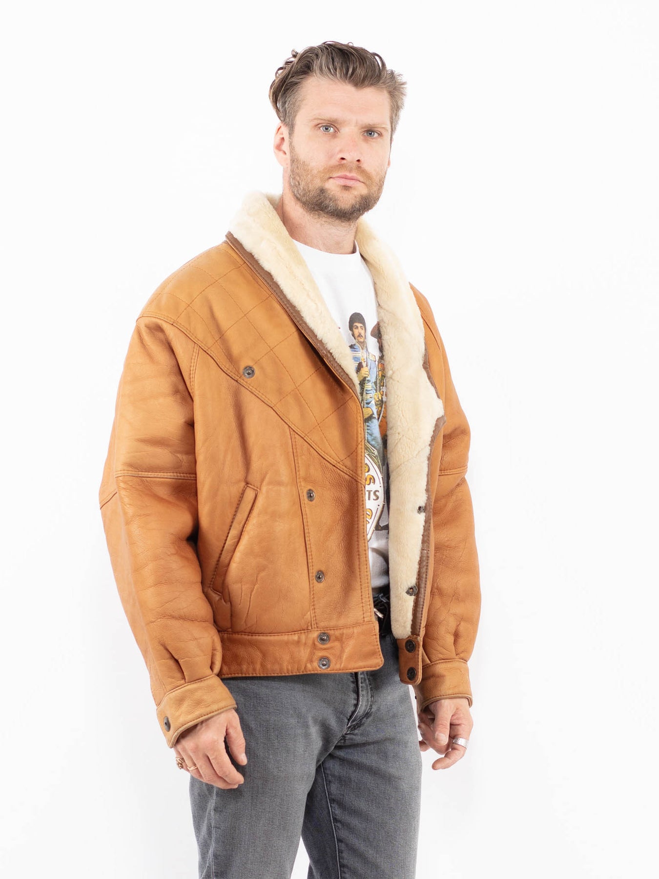 What it is: Kas tas ir: Vintage 80. gadu vīriešu aitādas jaka brūnā krāsā — genuine sheepskin (shearling), one-of-a-kind vintage. īsta aitāda (shearling), unikāls vintage izstrādājums.