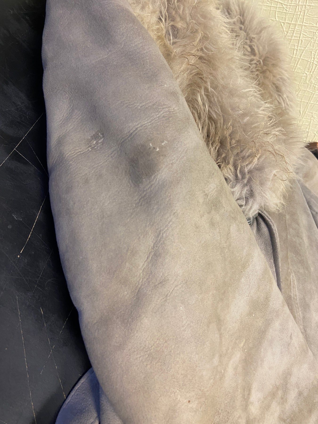 Vintāžas stāvokļa novērtējums: 6/10 Redzams nolietojums, izbalēšana un vispārējs virsmas nobrāzums ar dažiem tumšākiem plankumiem, traipiem un skrambām ap apakšmalu, piedurknēm un muguru.