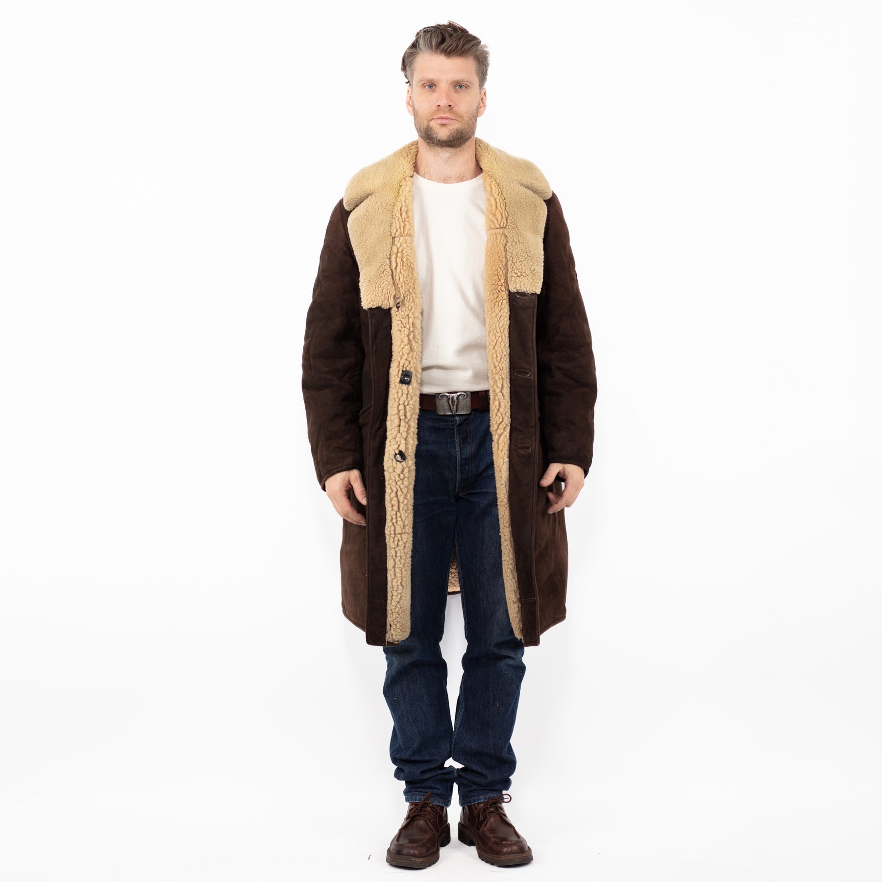 Vintage 70. gadu vīriešu aitādas mētelis brūnā krāsā