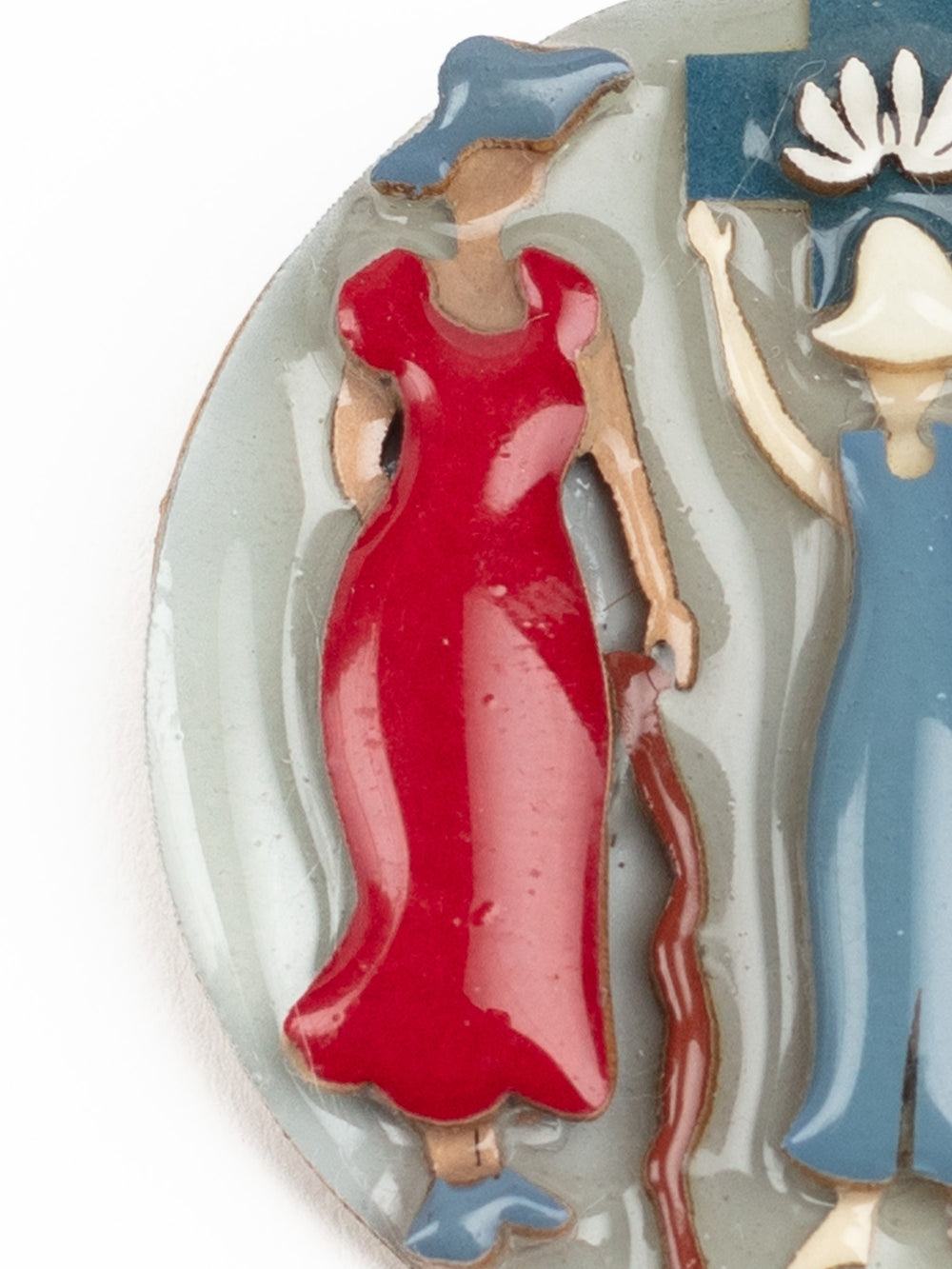 Materiāli: Ar rokām krāsota masa, metāla piespraudes aizmugurē